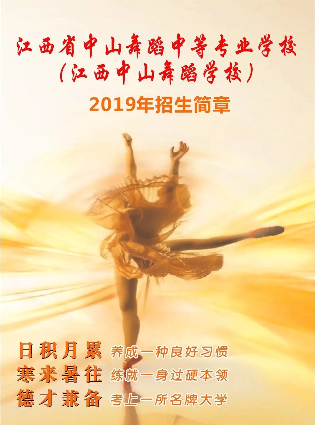 江西省中山舞蹈中等專業(yè)學(xué)校(原江西中山藝術(shù)學(xué)校)是有民革江西省委教育中心創(chuàng)辦的一所六年一貫制全日制普通中等舞蹈專業(yè)學(xué)校。學(xué)校于1996年經(jīng)江西省教育委員會(huì)批準(zhǔn)成立,2003年經(jīng)省政府辦公廳批準(zhǔn)增設(shè)普通中專,納入全省統(tǒng)招?,F(xiàn)開設(shè)六年制中國(guó)舞表演、芭蕾舞和三年制歌舞表演專業(yè)。學(xué)校以高考升學(xué)為主要培養(yǎng)目標(biāo),實(shí)行專業(yè)文化“雙優(yōu)”的教學(xué)模式,科學(xué)合理的安排教學(xué)課程,全面提升學(xué)生的專業(yè)和文化素質(zhì)。多年來(lái),一大...